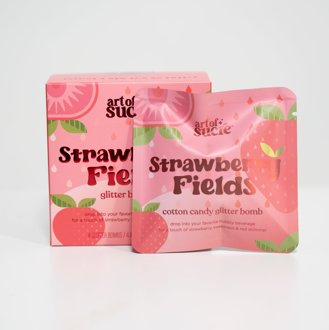Strawberry Fields: With a Strawberry flavored cotton candy and red glitter, this glitter bomb set will make you berry popular at any cookout, girls night, or event! Contains 4 Glitter Bombs